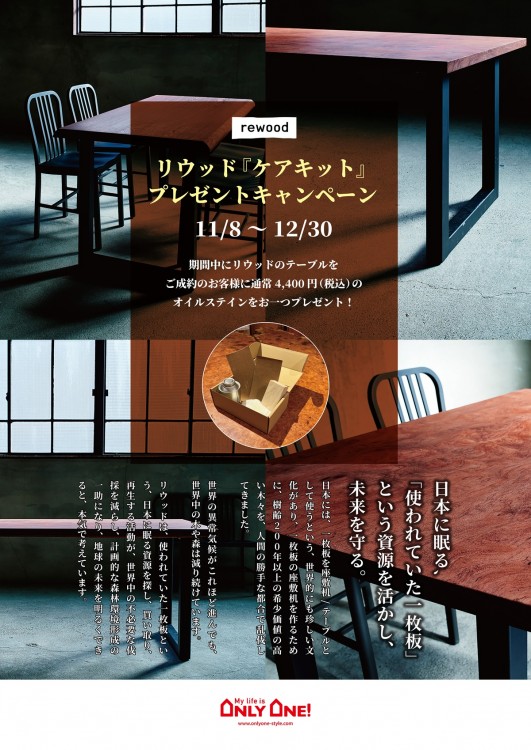 📣リウッド「ケアキット」プレゼントキャンペーン📣期間中にリウッドのテーブルをご成約のお客様に通常4,400円(税込)のオイルステインをお一つプレゼント!