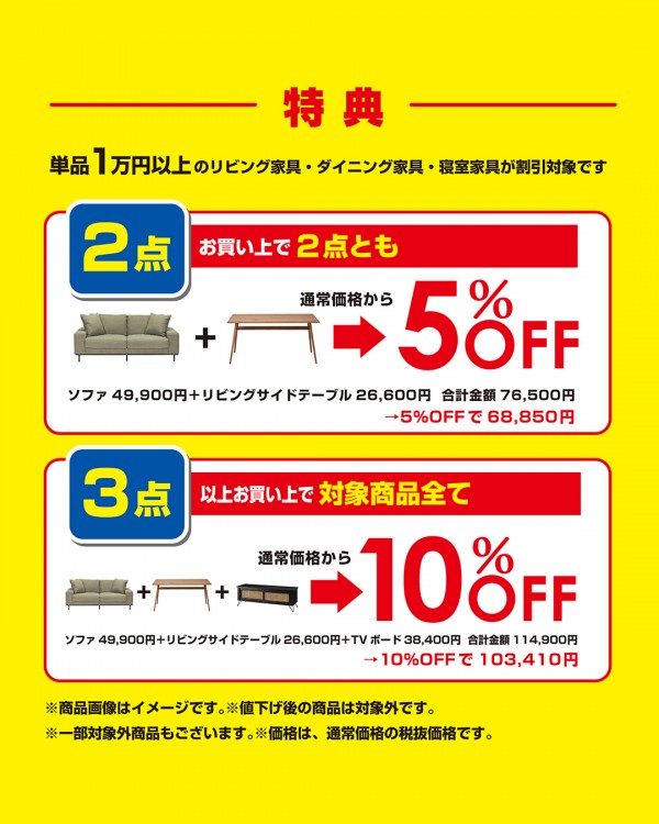 買えば買うほどお得になる「おまとめ割りSALE」がスタートします!🛋️