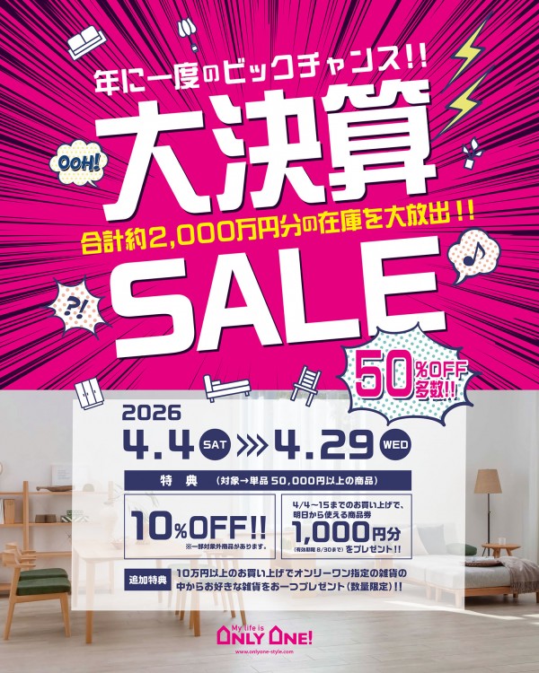 4月4日(土)より、店内を埋め尽くす圧倒的なボリュームで「大決算セール」を開催します🔥🔥