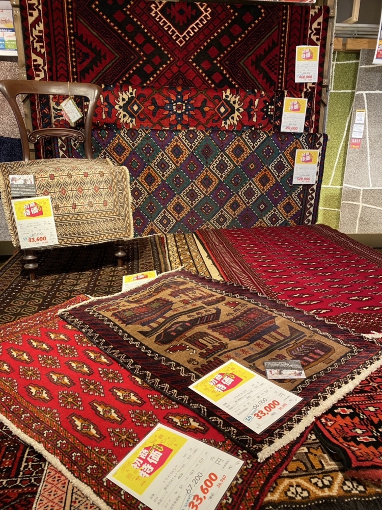 想定外のありがたい反響に「商品が足りない…!」と急遽追加手配したヴィンテージラグたちも無事に到着し、ますます見応えたっぷりのラインナップになりました。